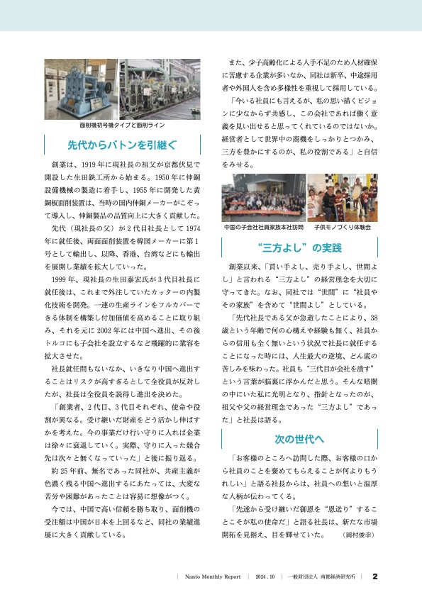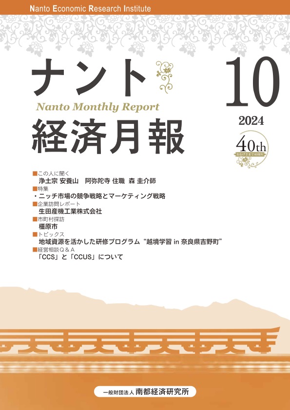 一般財団法人 南都経済研究所発行の『ナント経済月報』(令和6年10月号)に社長の記事が掲載されましたのでご紹介いたします。
