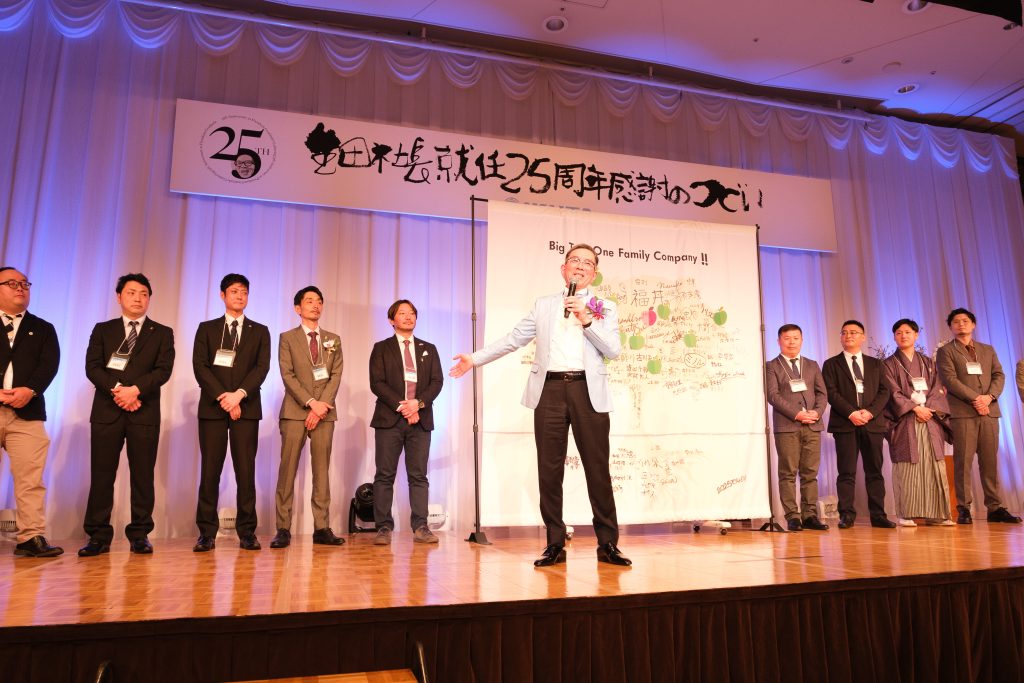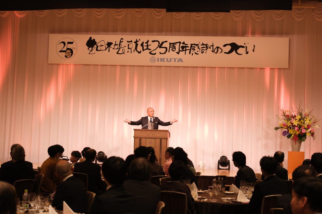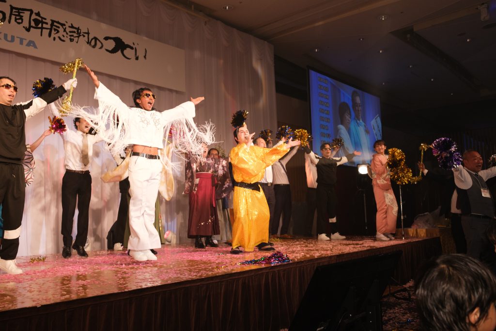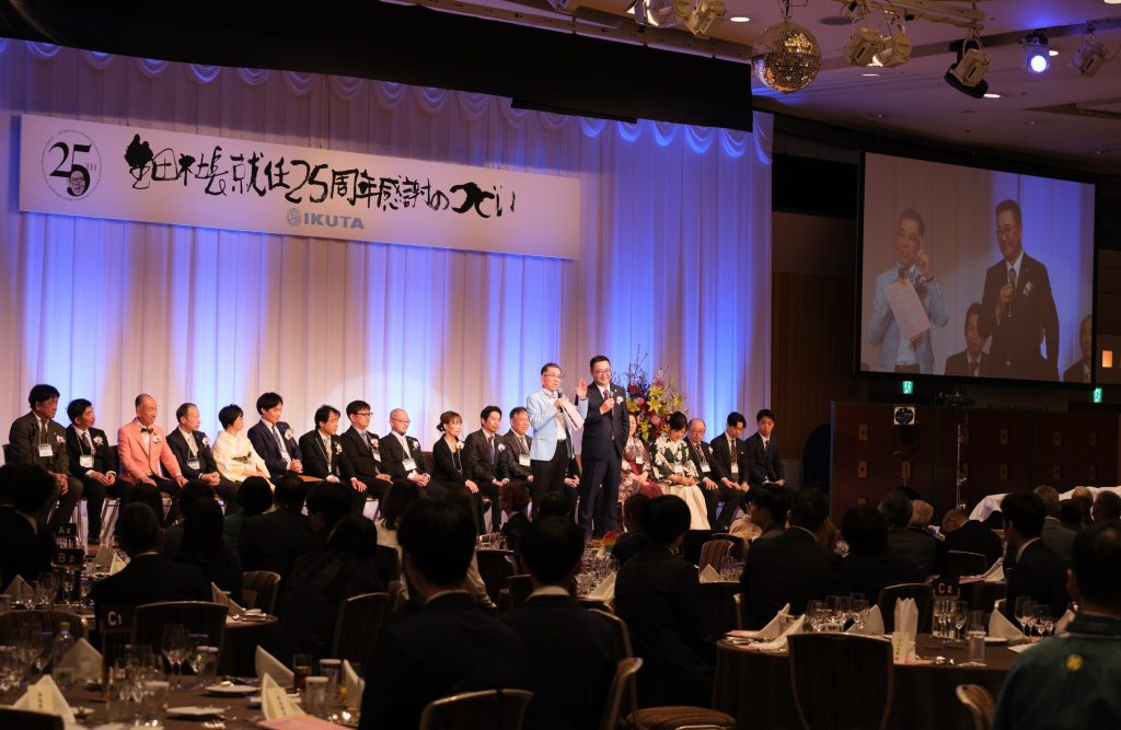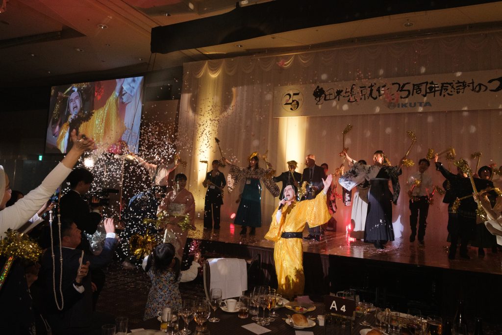 まばゆいばかりの華やかな大会場、彩りに溢れた袴姿、オシャレ着の社員、ご家族子供達、社外ファミリー240名というIKUTAの歴史の中であり得ないほどのファミリー一同を前にして、イントロとなるオープニングビデオのクオリティーの高さを目にして、幕が開いた瞬間に、想像を遥かに超える感謝の集いになると確信しました。