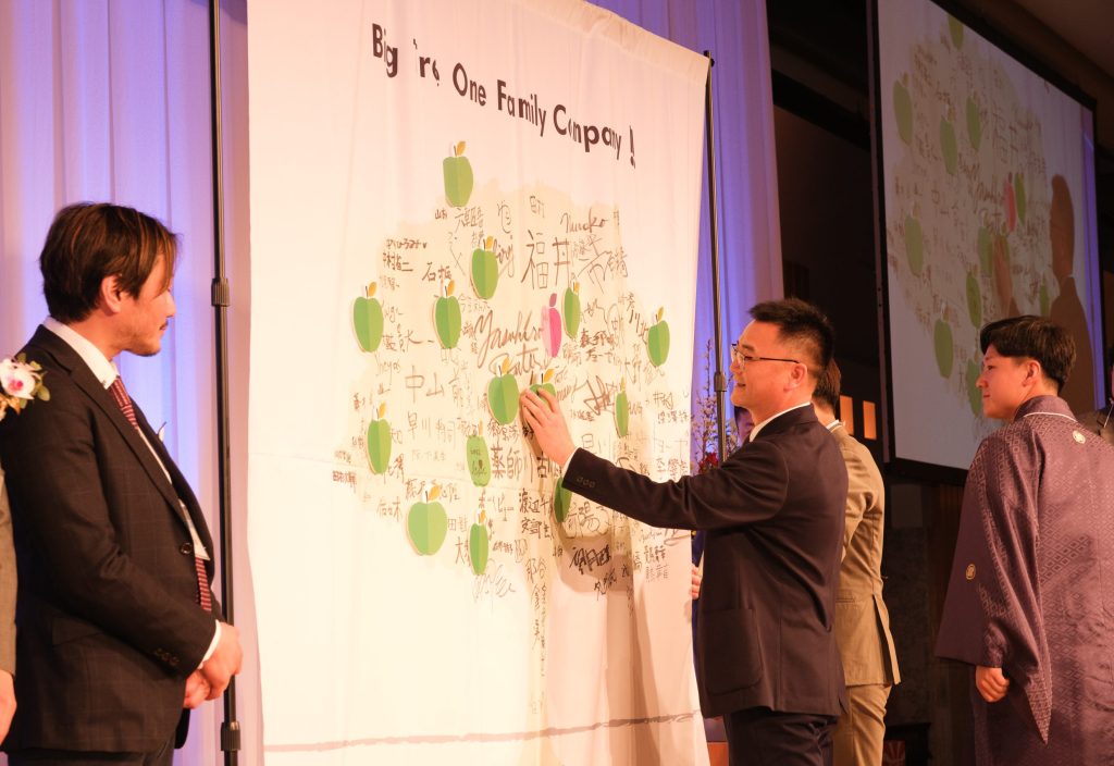 一部二部を通して絵巻物のごとく、フィナーレに至るまでの全ての企画にテーマ性が帯びて驚きと感極まる、感動の連続となりました。一つの赤リンゴ🍎と多数の青リンゴ🍏、参加者のサインで溢れて完成したビックツリーがまさしくIKUTAの魂が込められたブランディングサインとなった瞬間でした。