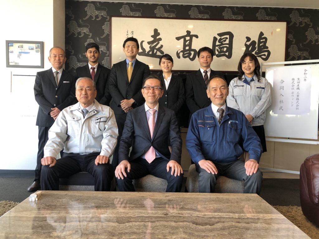 4月4日に生田産機工業・京ウィンド合同の入社式と第68期経営方針発表会を開催しました。
