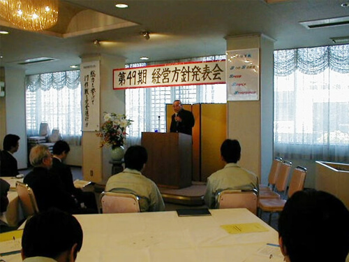 そして、5月に初の経営方針発表会開催。経営方針を社員に伝え、その方針に沿って各部門、各人がどう取り組んでいくかを皆で共有する。さらには外部の関係者、特に取引金融機関にしっかりと伝えて支援してもらうという目黒先生の教えはこの時にスタートし、今も続いている生田産機工業の伝統といえる。